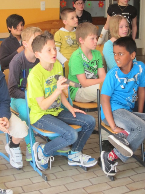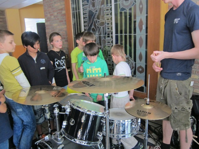 Die jungen Musiker der Band Mind Tremor stellten ihre Instrumente vor und bauten gemeinsam mit den Schülerinnen und Schülern die Band auf. Anschließend wurde das Gehör der Kinder auf die Probe gestellt, da nun erraten werden musste, welches Instrument gerade Pause hat. Zum Schluss wurden die Instrumente ausprobiert und natürlich Autogramme gesammelt. RICHTIG TOLL!